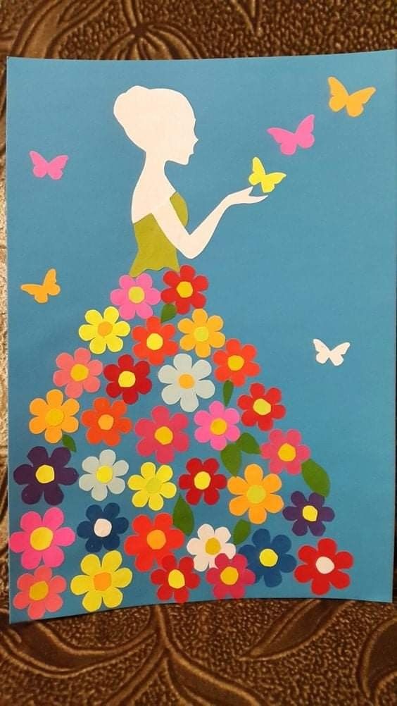Silhueta de Mulher com vestido de flores para Painel